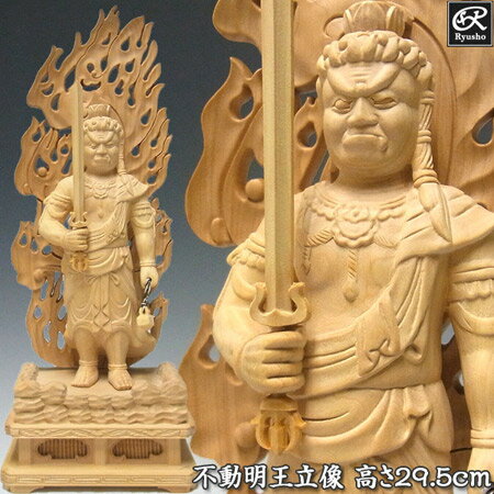 ■木彫り 仏像 不動明王 立像 高さ29.5cm 柘植製 [Ryusho]