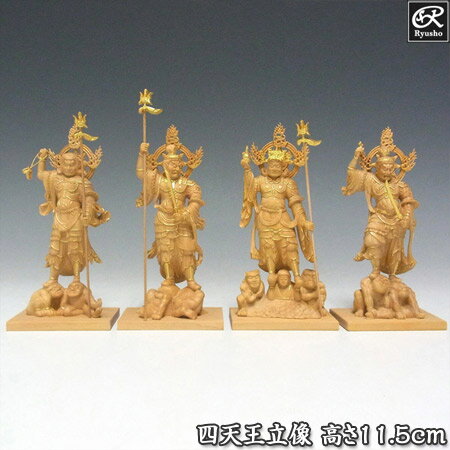 ■木彫り 仏像 四天王 金彩 立像 高さ11.5cm 柘植製 本格ミニ仏像 [Ryusho]