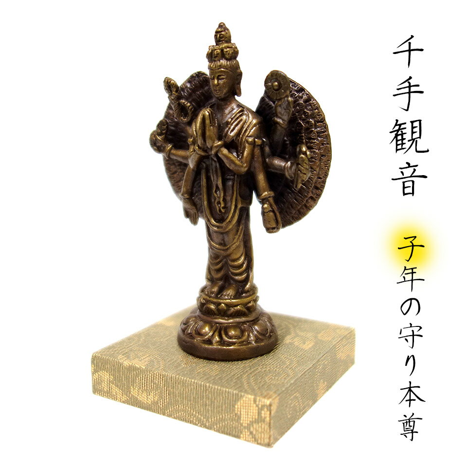 ■ミニ仏像 「千手観音」 子年の守り本尊 飾り壇付き 枕辺サイズ 護持仏 念持仏 佛 新品 ネズミ ねずみ年 48674