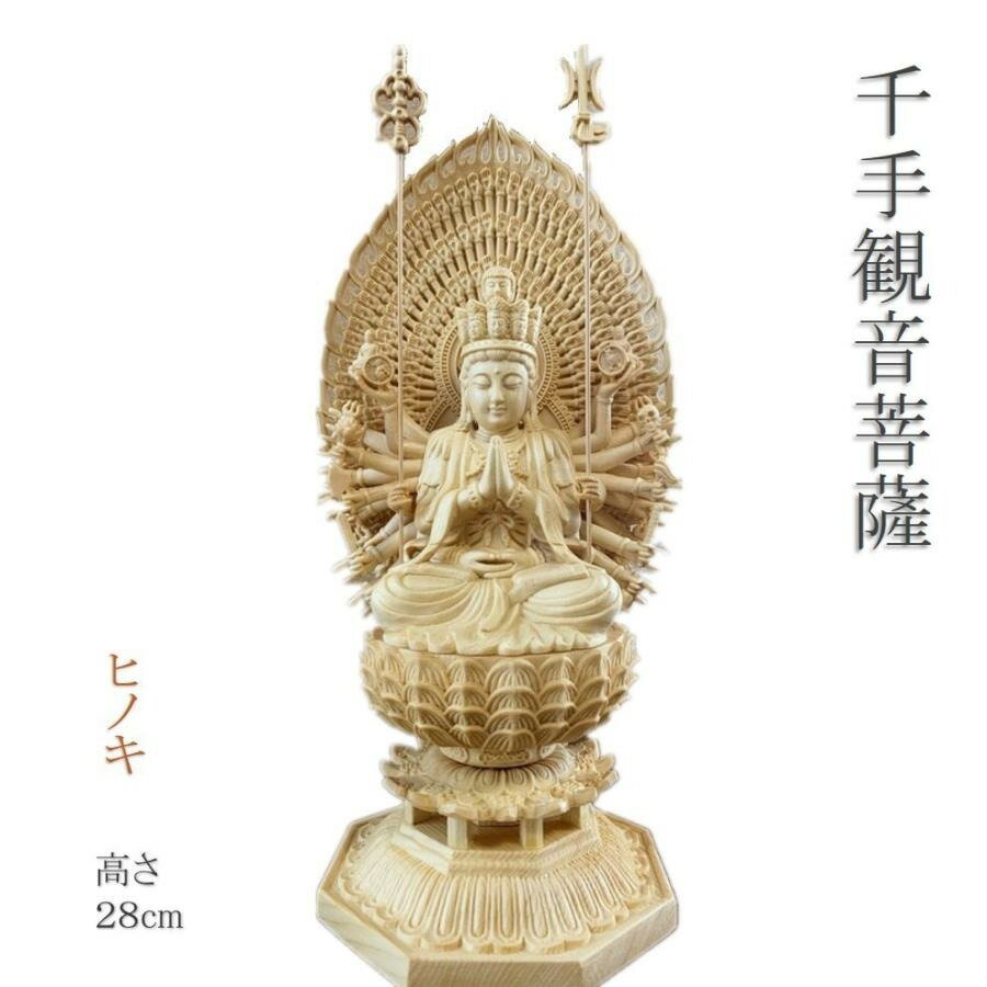 商品情報サイズ高約28cm幅約12cm奥行約12cm材質檜木注意事項御仏像は繊細な彫刻で造られており、破損防止の為、いくつかのパーツに分けて発送しております。大変お手数をお掛け致しますが、到着致しましたら、いくつかの組立及び飾り付けをお願い致します。 商品説明天然木を使用している為、各部位の色合い・色味、木目の出方に個体差がありますので、ご了承願います。(写真は、現品写真ではございませんので木目な...