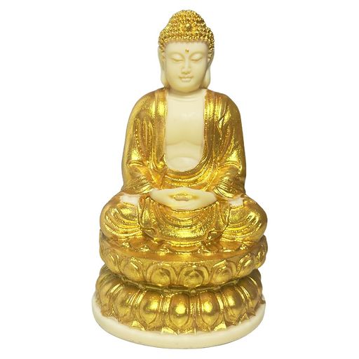 ■YUYAKESHI釈迦お釈迦様如来像厄除け座像風水仏像お守り開運祈るココヤシの果実仏壇蓮台座置物ボックス付12cm高(金色)