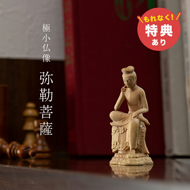 ■【特典あり】極小仏 弥勒菩薩[仏像 弥勒菩薩半跏思惟像 木彫り 木彫 ミニ仏像 木彫り仏像 フィギュア ミニ ミニチュア オブジェ 玄関 縁起物 置物 お守り コンパクト 本尊 仏壇 日本製 国産]