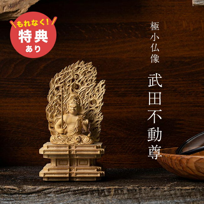■【特典あり】極小仏 武田不動尊[武田信玄 不動明王 不動明王像 不動明王仏像 ミニ 仏像 木彫 フィギュア オブジェ 置物 玄関 お守り ミニチュア ミニ仏像 木彫り仏像 仏壇 日本製 和 和風 インテリア]