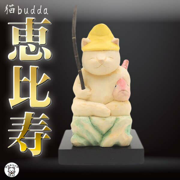 ■恵比寿 木彫り 様 置物 像 大黒様 木彫 開店祝い 花以外 かわいい 七福神 縁起物 猫 仏像 商売繁盛 フィギュア 人形 小さい お守り 【猫福神 恵比寿】猫budda 仏屋さかい インテリア おしゃれ 木製 猫雑貨 ねこ ギフト ハンドメイド 猫好きに ひのき 酒井豪 猫仏 ss s2