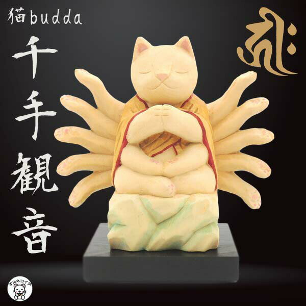 ■千手観音 仏像 猫 開運 木彫 フィギュア 木彫 人形 小さい ミニチュア お守り 置物 招き猫 置物 仏像 木彫り【猫buddha 千手観音】仏屋さかい インテリア おしゃれ 木製 猫雑貨 ねこ ギフト 誕生日 お祝い あしゅら ハンドメイド 猫好きに ひのき 酒井豪 猫仏 ss s2