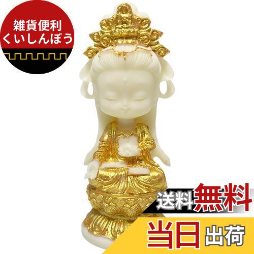 ■Umora ミニ 可愛い 観音像 観音菩薩 置物 厄除け インテリア 風水 仏像 お守り 開運 祈る ココヤシの果実 観音様 ギフト 仏壇 ボックス付き(金色の輪郭)