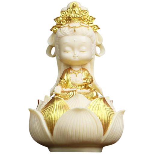 ■Umora ミニ 可愛い 観音像 観音菩薩 置物 厄除け インテリア 風水 仏像 お守り 開運 祈る ココヤシの果実 観音様 ギフト 仏壇 ボックス付き(金色の輪郭)