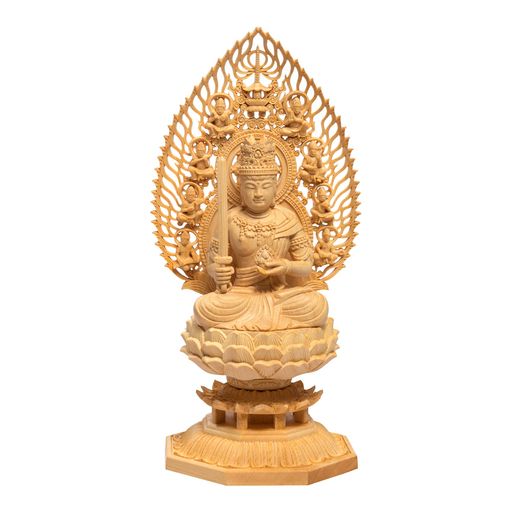 ■繁樓藝雕仏像虚空蔵菩薩仏壇仏像置物桧木製木彫り飛天光背八角台座丑年・寅年開運十二干支お守り本尊祈る厄除け(高さ28cmx巾12cmx奥行12cm)