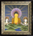 - 仏画 緞子 色紙額 「山越え阿弥陀三尊」 複製画 額付き(額外寸32.5x35.5cm) 新品 仏画 仏教美術 仏間に。仏事の飾りに。干支の守り本尊 厄除け