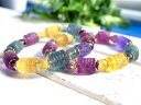 チベット密教法具 マニ車 モチーフ 豪華なゴールドカラー装飾 天才の石 マルチカラー フローライト 【蛍石】摩尼車 デザイン ブレスレット