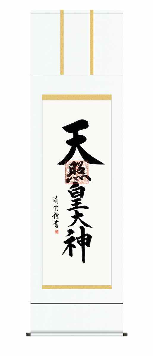 ■【スーパーSALE10%OFF】10年保証 掛け軸 仏画 行事飾り 仏事書 御神号 天照皇大神(あまてらすおおみかみ)吉村 清雲 尺五 桐箱入り 白綸子御神号表装(しろりんずごしんごうひょうそう) モダン 掛軸 床の間 和室 おしゃれ 壁掛け 絵