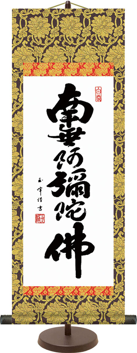 ■掛け軸 掛軸 自立掛軸 自立 飾る 専用スタンド付き モダン 床の間 和 リビング 木村玉峰 「 六字名号 」 < 送料無料 > インテリア アート 仏画 21cm×約60cm 命日 お彼岸 お盆 法要
