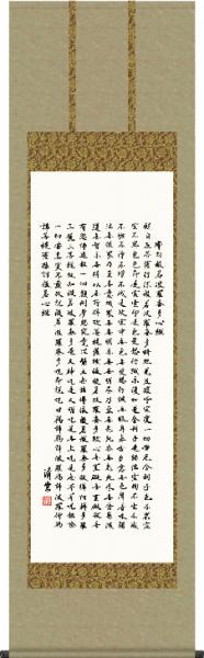 宗派を超えた衆生の心の拠りどころ 同梱購入される方だけの特典-特製オニックス製風鎮(ふうちん-掛け軸の装飾品)を 特別価格にてご提供しております♪ 仏書掛け軸で安らかな空間を創造する!一幅の掛軸が床の間を演出いたします! 仏経典の真髄とされ宗旨宗派を超えて多くの人々の心の拠りどころとされる、二百六十二文字のありがたい御心経を、心を込めて謹書した価値ある逸品です。 ●幅54.5×高さ190cm ●本...