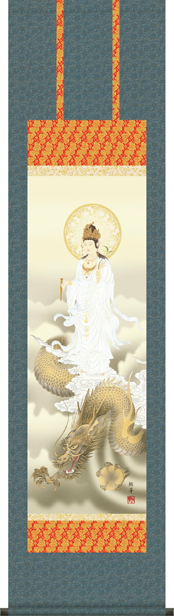 ■掛け軸 龍上観音 北条裕華 小さい尺三 化粧箱 仏画掛軸・送料無料掛け軸[床の間 仏間 飾る 法事 法要 供養 仏事 初盆 追善供養 モダン 贈答 表装]