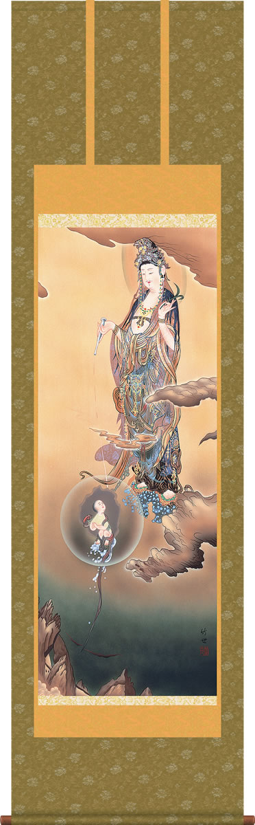 ■掛け軸 慈母観音 田村竹世 尺五 桐箱 仏画掛軸[床の間 仏間 飾る 法事 法要 供養 仏事 初盆 追善供養 モダン 贈答 表装]
