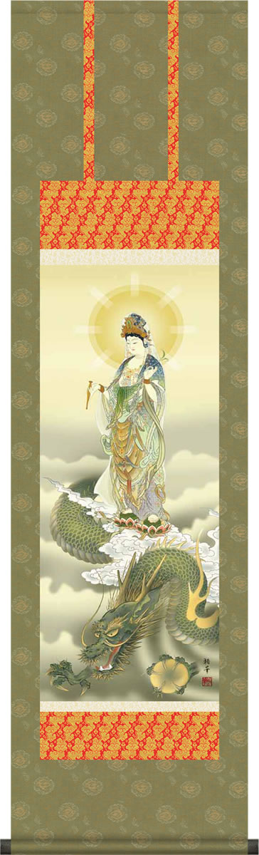 ■掛け軸-龍上観音/北条 裕華(小さい尺三)法事・法要・供養・仏事での由緒正しい仏画作品 モダンに掛物をつるす