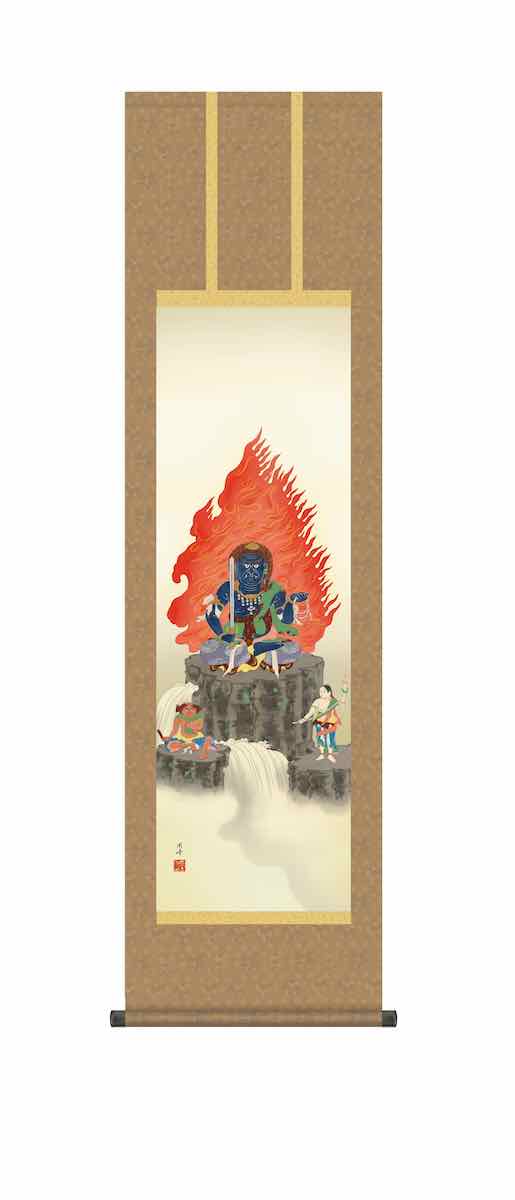 ■掛け軸-不動明王/田村 竹世(小さい尺三)法事・法要・供養・仏事での由緒正しい仏画作品 モダンに掛物をつるす