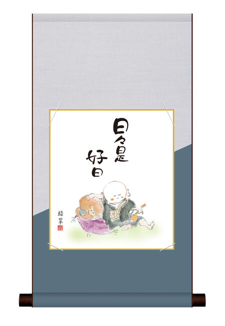■掛軸 色紙掛・色紙セット 仏画 「日々是好日」 <送料無料> 平安純綿デザイン色短掛 色紙 インテリア アート 日本 仏事画 外国人向け土産 リビング 掛軸 31cm×57cm