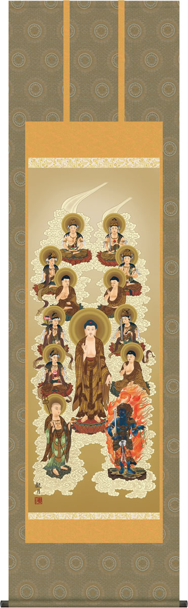 ■掛け軸-十三佛/鈴木 翠朋(丈が短いサイズあんどん・仏事のみならず日常掛け掛軸として仏画掛軸をどうぞ)[床の間 仏間 飾る 法事 法要 供養 仏事 初盆 追善供養 モダン 贈答 表装]daily-1