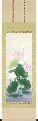 ■仏事床掛軸【仏事用掛け軸】 仏画■ 聖蓮華 ■佐藤良一作|尺五立|桐箱収納