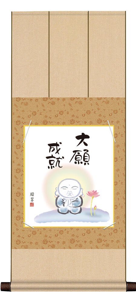 ■掛軸 色紙掛・色紙セット 仏画 「大願成就」 <送料無料> 八坂緞子色短掛 色紙 インテリア アート 日本 仏事画 外国人向け土産 リビング 掛軸 31cm×75cm 仏 お地蔵さん 合掌
