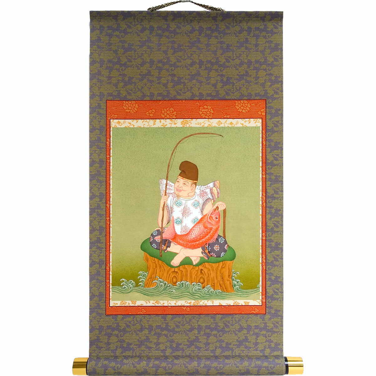 ■掛け軸 「恵比寿」模表装 36x56cm 吉祥画 開運 商売繁盛 五穀豊穣 豊漁 鯛 護持仏 仏画 掛軸 佛 新品 模軸 20378