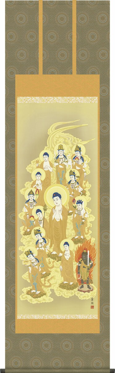 ■【スーパーSALE10%OFF】10年保証 掛け軸 仏画 行事飾り 仏事画 真言十三佛(しんごんじゅうさんぶつ)田中 広遠 尺三 化粧箱付き 洛彩緞子佛表装(らくさいどんすぶつびょうそう) モダン 掛軸 床の間 和室 おしゃれ 壁掛け 絵
