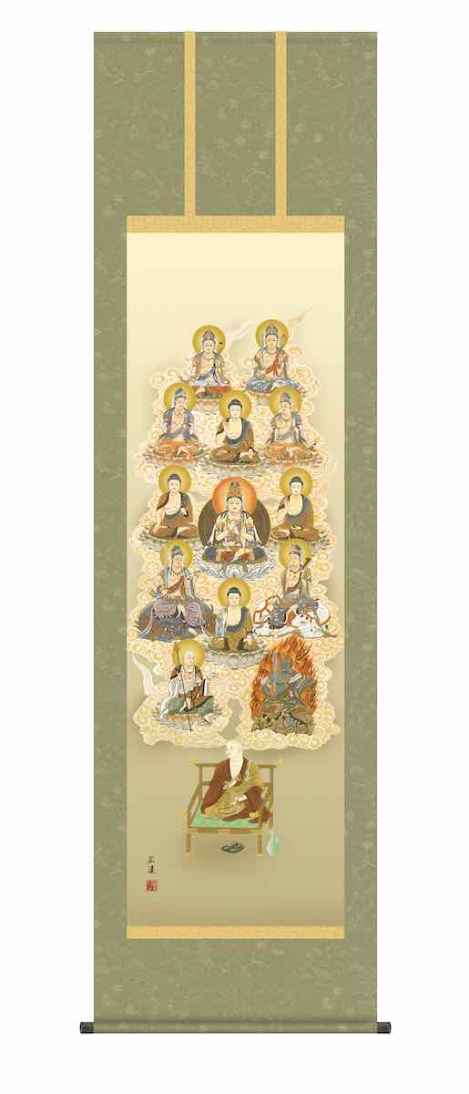 ■掛け軸 真言十三佛 永井暁月 尺五 桐箱 仏画掛軸・送料無料掛け軸[床の間 仏間 飾る 法事 法要 供養 仏事 初盆 追善供養 モダン 贈答 表装]