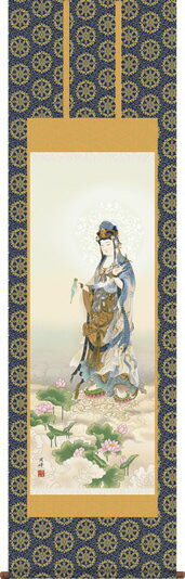 ■掛け軸-蓮上観音/高畠 周峰(尺五・仏事のみならず日常掛け掛軸として仏画掛軸をどうぞ)[床の間 仏間 飾る 法事 法要 供養 仏事 初盆 追善供養 モダン 贈答 表装]