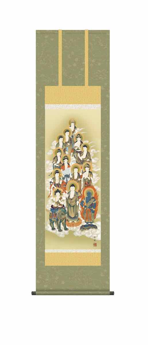 ■掛け軸-十三佛/鈴木翠朋(尺五 5尺丈)法事・法要・供養・仏事での由緒正しい仏画作品 モダンに掛物をつるす