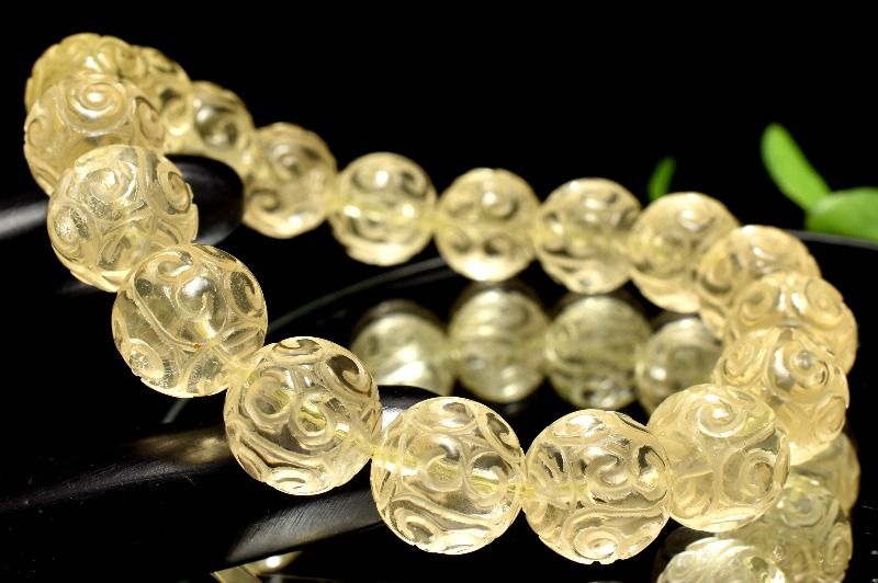 ■【20%OFF!】【1点物】繊細彫刻 レモンクォーツ 11.5mm マニ車彫刻 ブレスレット アクセサリー _MC1594