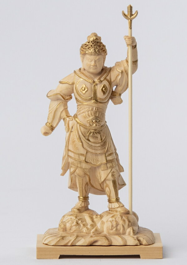 説明 毘沙門天は福徳の神として親しまれている神仏「七福神」の内の一尊です。 インドより伝わった仏教の守護神。四天王に属しており、別名「多聞天」とも呼ばれています。古くは武運の神として戦国武将に信仰されました。 武将の姿をしており、右手に矛、左手に宝塔を持っています。 七福神は意外と知られていませんがインド、中国、日本の神仏から構成されています。七福神の信仰は室町時代末期に始まり、江戸中期から広く庶...