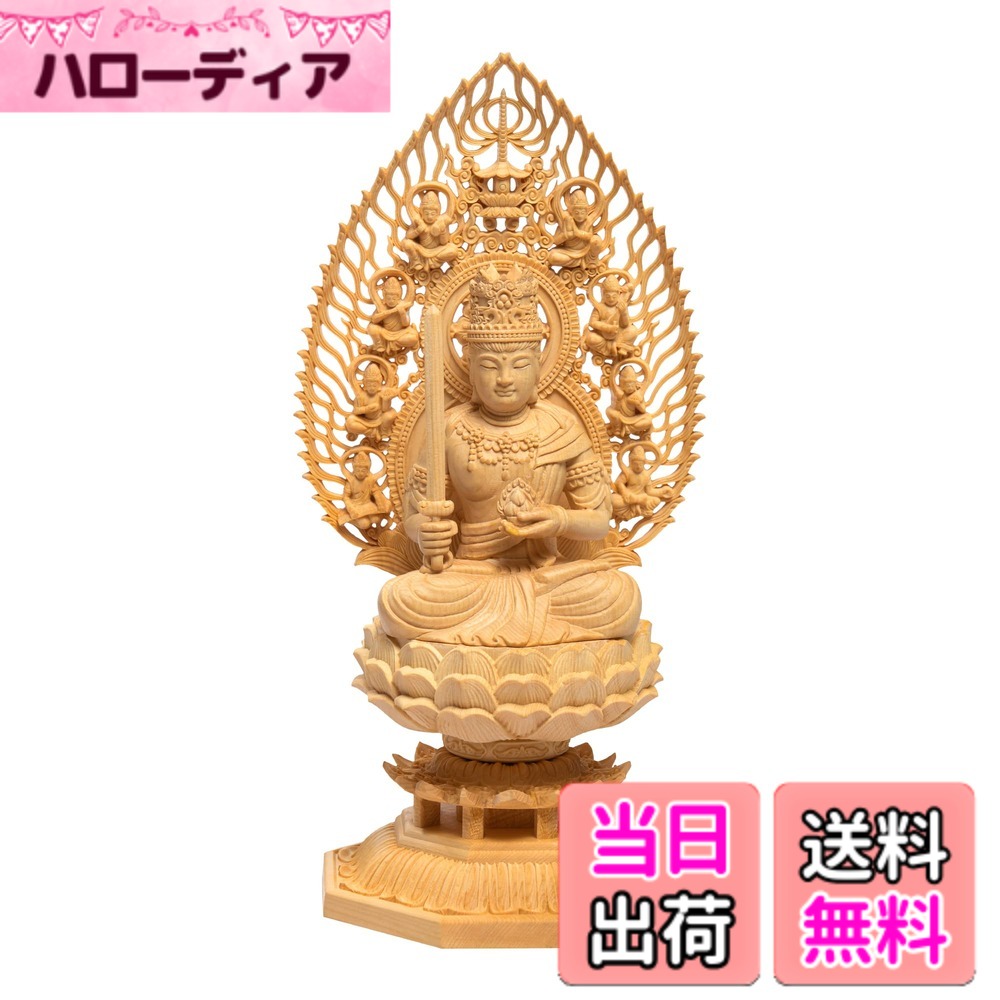 ■繁楼芸雕仏像虚空蔵菩薩仏壇仏像木彫り桧木製丑年・寅年開運十二干支お守り本尊祈る厄除け飛天光背八角台座(高さ28cmx巾12cmx奥行12cm)