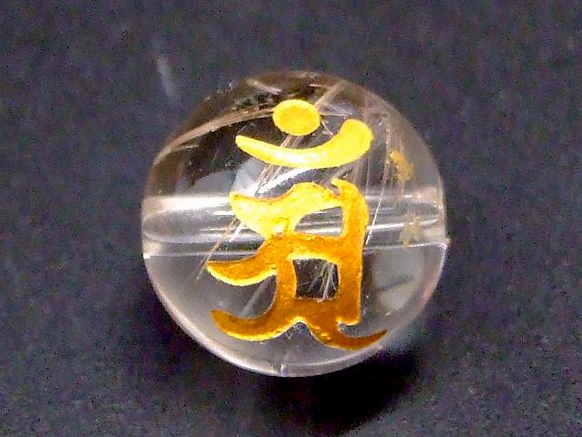 ■67345 ルチル入り 梵字彫 アン 水晶 10mm 1粒売り 辰・巳年 普賢菩薩 クリスタル クォーツ ブラジル産 送料無料 天然石 パワーストーン