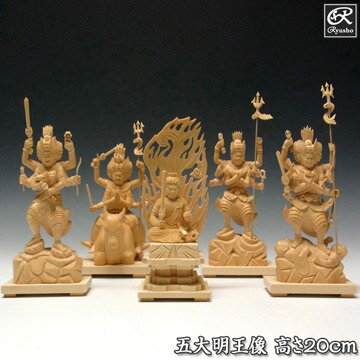 ■木彫り 仏像 五大明王セット 高さ20cm 桧製 金剛夜叉明王 大威徳明王 不動明王 軍荼利明王 降三世明王 [Ryusho]