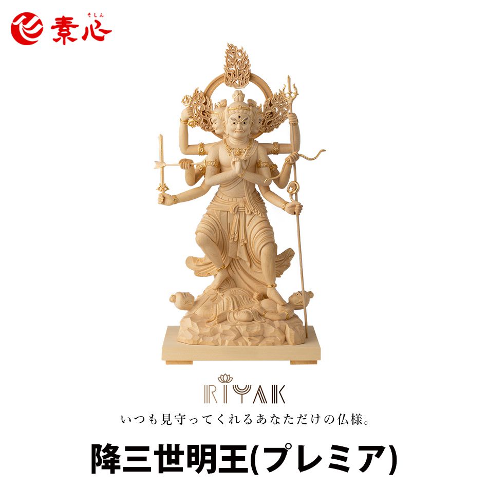 ■RIYAK 五大明王 降三世明王 PREMIER【ご利益 仏具 仏像 木製 木彫り 置物 置き物 桧木 ヒノキ ひのき モニュメント】
