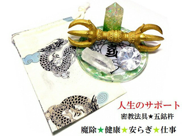 こちらの商品は、人生の強力サポート!!五鈷杵セット商品です。 ストーンプレートには五大明王様の梵字が埋め込まれており、百難を避け百福を得る護符が入っております。 五鈷杵は、魔を打ち祓い邪氣邪念や生霊、悪霊などを避けてくれます。 ☆使いかたは人それぞれですが 普段から五鈷杵だけ持ち歩いて、ご自宅に戻ったら金の座布団の上に置く。 車に入れておいたり、枕元や寝室の棚、勉強机やデスク、玄関に置いておくのも...