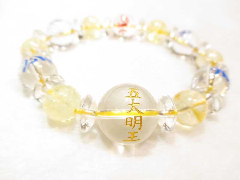 パワーストーン・京都/【レディース】【五大明王守護梵字(不動明王・降三世明王・大威徳明王・軍荼利明王・金剛夜叉明王)】彫刻、大玉16mm【そろばん本水晶】【シトリン】ブレスレット、桐箱付【伏見の京屋】 煩悩を焼き尽くす、明王の光 5...