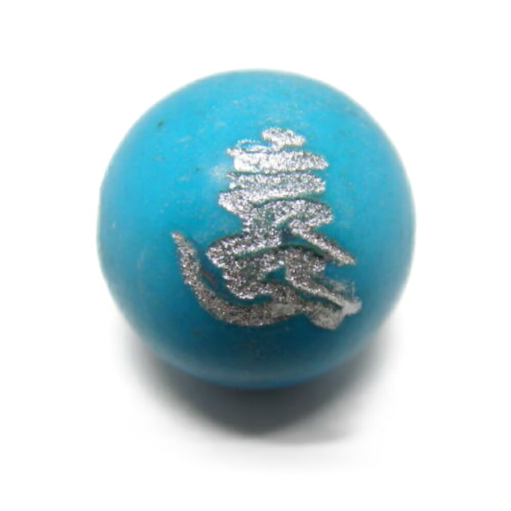 ■【レーザー彫刻ビーズ・彫りビーズ 】愛染明王 ターコイズ 12mm (銀彫り) 「梵字」 ウーン 手作りにオススメ! 天然石 パワーストーン / インペリアルオーラ おしゃれ かわいい オシャレ 可愛い プレゼント ギフト 贈り物