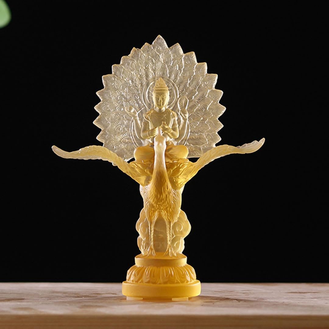 ■孔雀明王 仏像 瑠璃 厄除け 13.5cm 孔雀王母菩薩 孔雀仏母 置物 守り本尊 除災 開運 繁盛 仏間 仏壇