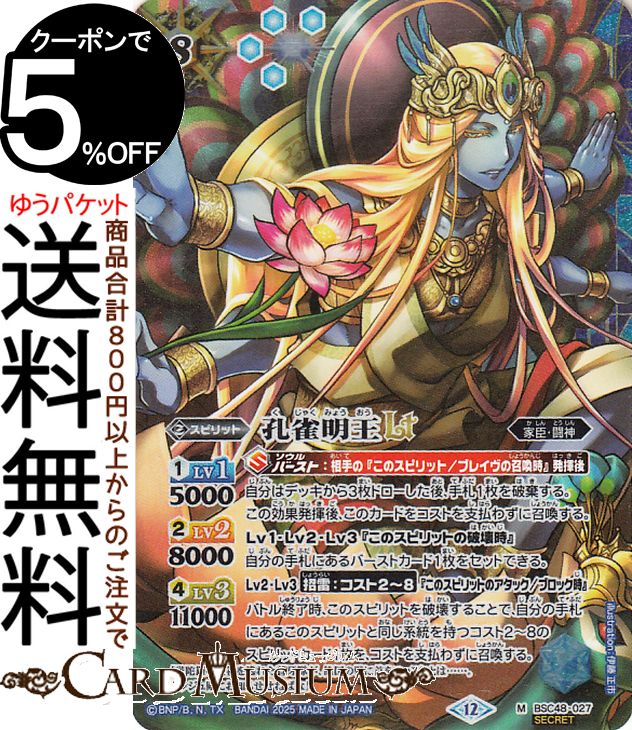 ■バトルスピリッツ 孔雀明王LT(シークレット) バーニングレガシー(BSC48) | バトスピ 027 スピリット 青 家臣・闘神 BattleSpirits