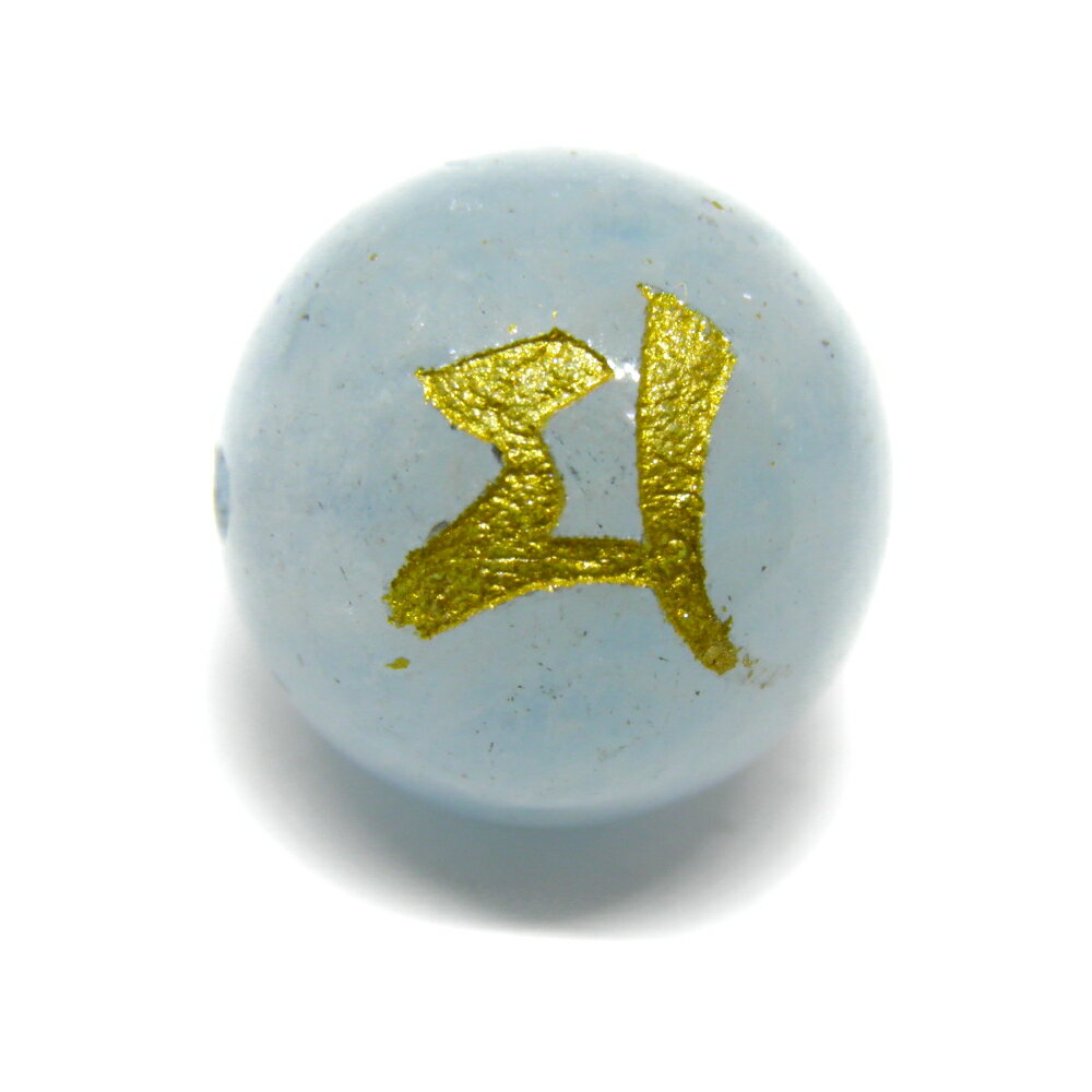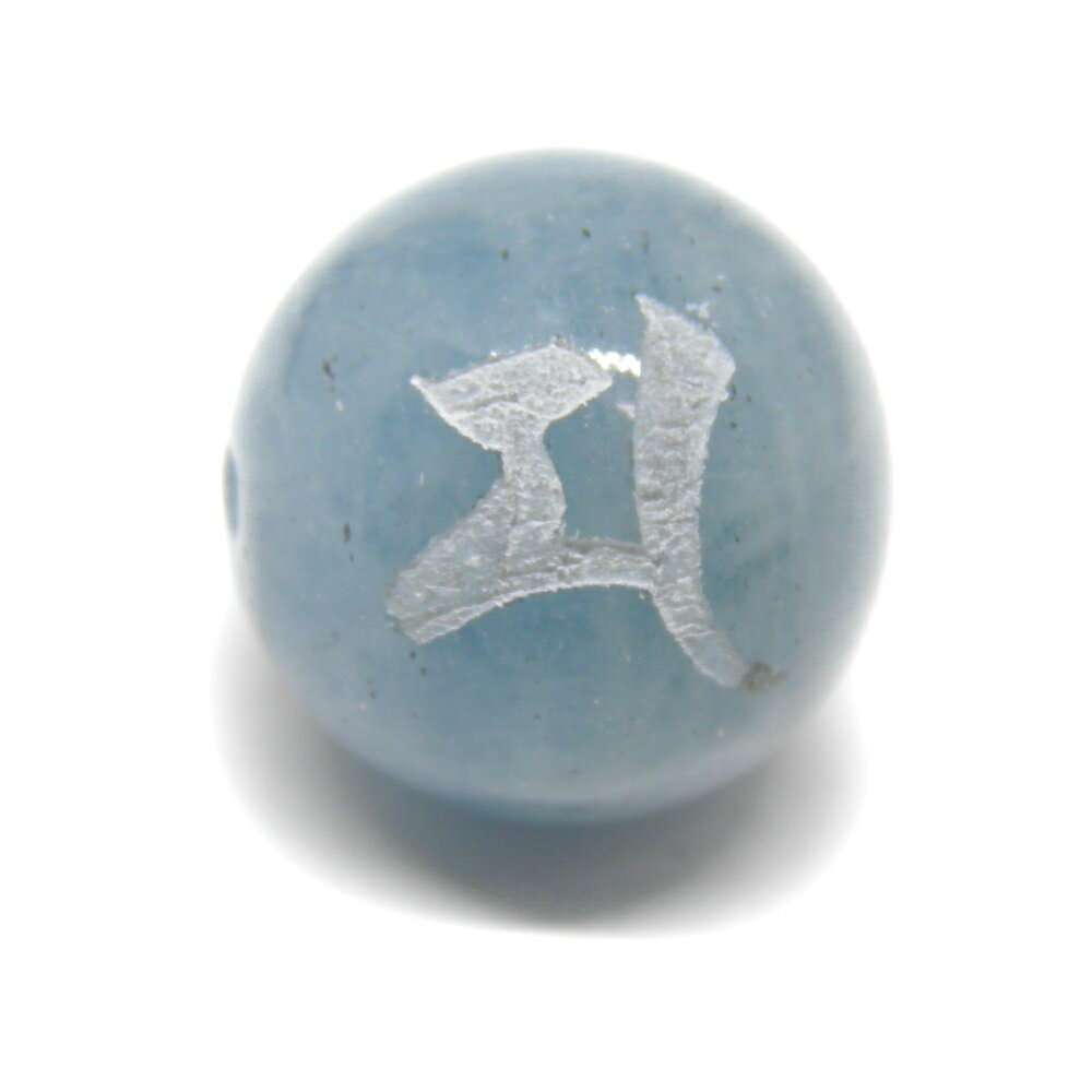 ■マ・大黒天/孔雀明王/摩利支天/大自在天/大力金剛菩薩 アクアマリン 白彫り 梵字玉 横穴 手作りにオススメ! 天然石 パワーストーン / インペリアルオーラ おしゃれ かわいい オシャレ 可愛い プレゼント ギフト 贈り物