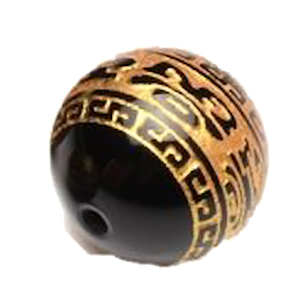 ■ウ・烏枢沙摩明王/伎芸天/宇賀神 オニキス 金彫り 梵字玉 12mm 彫刻ビーズ・彫りビーズ 手作りにオススメ! 天然石 パワーストーン / インペリアルオーラ おしゃれ かわいい オシャレ 可愛い プレゼント ギフト 贈り物