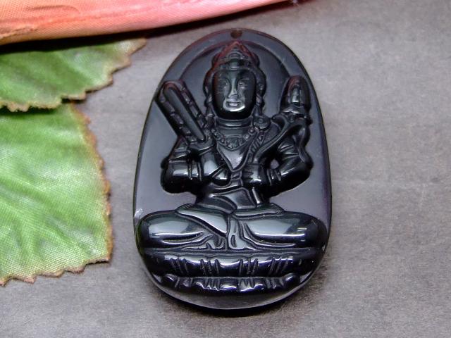 ■65124 今月の半額 わけあり オブシディアン 43mm×28mm 1個売り 明王 ほとけ お守り 厄除け ペンダントトップ 送料無料 アメリカ産 天然石 パワーストーン