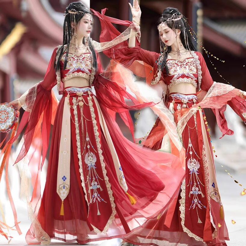 ■敦煌風 民族衣装 エキゾチック ダンス衣装 飛天コスチューム 漢服 プリンセス風 舞台衣装 発表会用 レディース ロケーションンポートレート 西域風 旅行写真 中国風 舞踊衣装 異国情緒 フォトジェニック 演舞衣装 古代風 幻想的 舞姫風