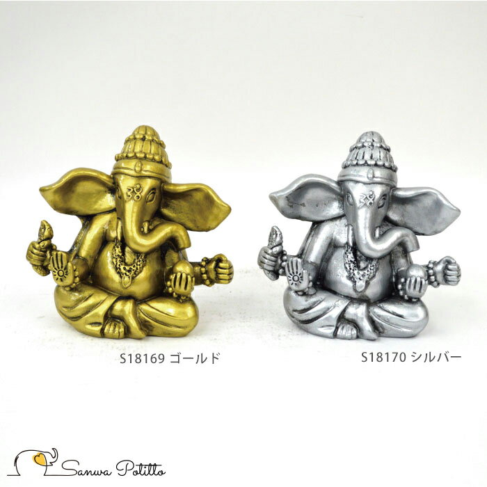 ■インドの神様 ガネーシャの置物 ガネーシャ 置物 ガネーシャ像 夢を叶える象 金運アップ 開運 瞑想 商売繁盛 現世利益 ヒンドゥー教の神様 象の神様 ゾウの神様 ガナパティ 歓喜天 聖天 S18169-18170 高さ10.5cm 金 ゴールド 銀 シルバー