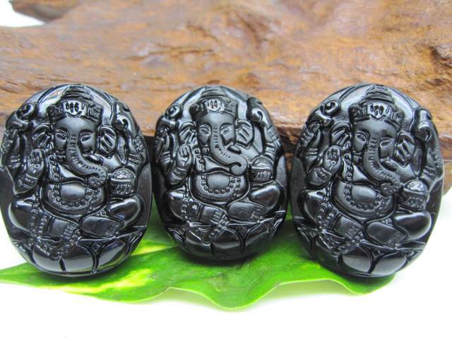 ■【飾り物】オブシディアンガネーシャ39×30×11mm