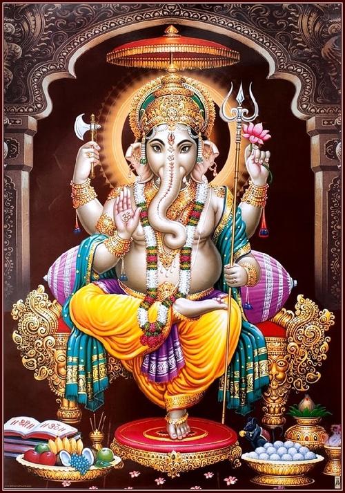 ■〔約40.5cm×約30.5cm〕輝くラメ入り インドのヒンドゥー神様ポスター / ガネーシャ シヴァ サラスヴァティ ハヌマーン ヴィシュヌ クリシュナ ガンガー ヒンドゥー教 絵画 インドの神様 Aポスター 本 印刷物 ステッカー ポストカード