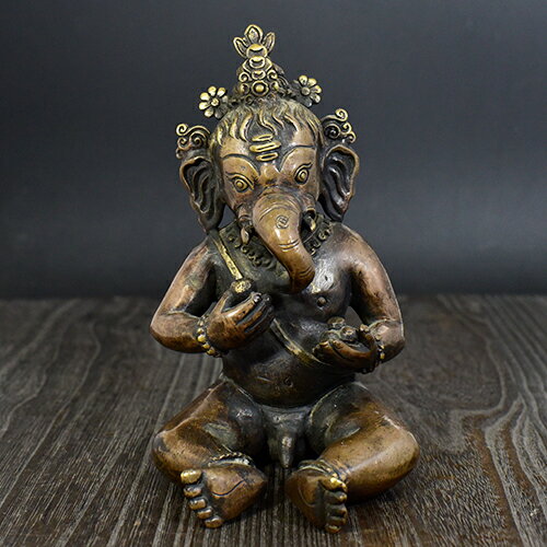 ■インドの神様 ガネーシャ 銅象 置物 夢をかなえるゾウ インド神話 ヒンドゥー教 神々 象頭財神【送料無料】