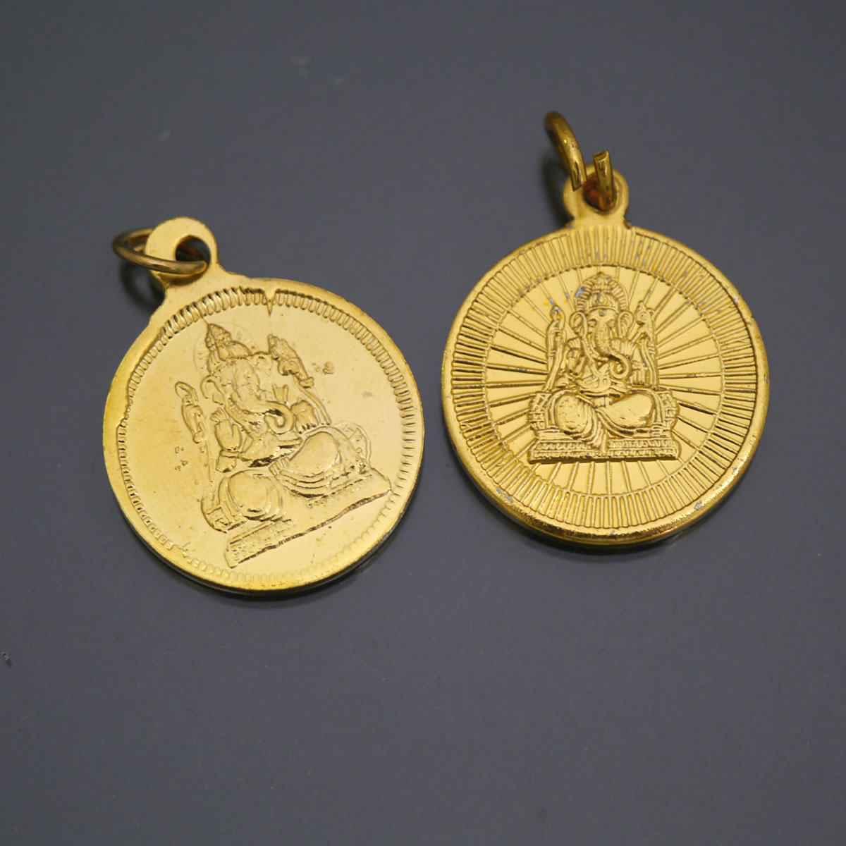 ■ピカピカゴールドのガネーシャ様のメダルトップ 金運アップのお守り エスニック アジアン雑貨
